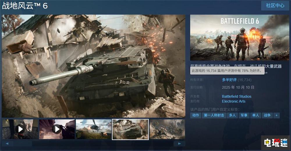 《战地6》Steam首发玩家峰值突破74万,游戏体验引发热议